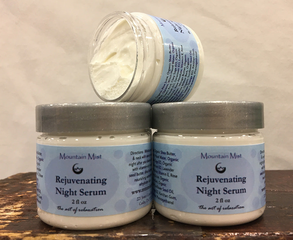 Our amazing Rejuvenating Night Serum is formulated with vitamin-rich mango seed butter, shea butter, organic rosemary and neem seed oils, and soothing white willow bark. Our vegan serum works to bring the look and feel of total hydration and intense nourishment. Lightly scented with the essential oil, it's perfect for helping you stay balanced and wake up refreshed and naturally beautiful!