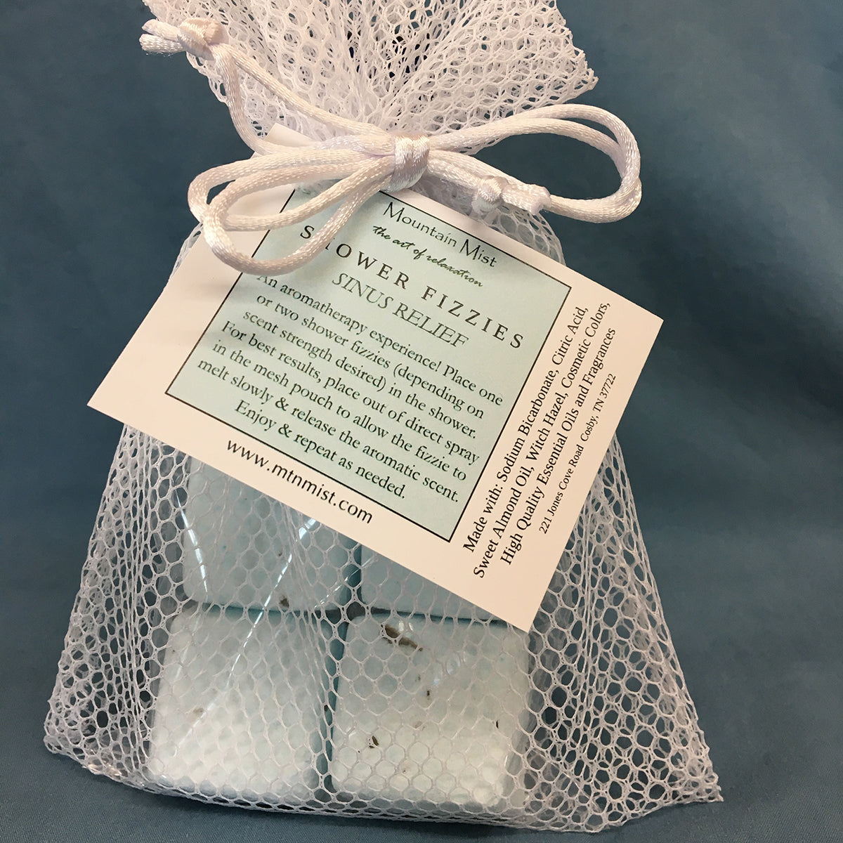 Size: Shower Fizzies are sold 6 to a pack which are packaged in a mesh bag that can be hung in the shower. Available in a variety of scents.